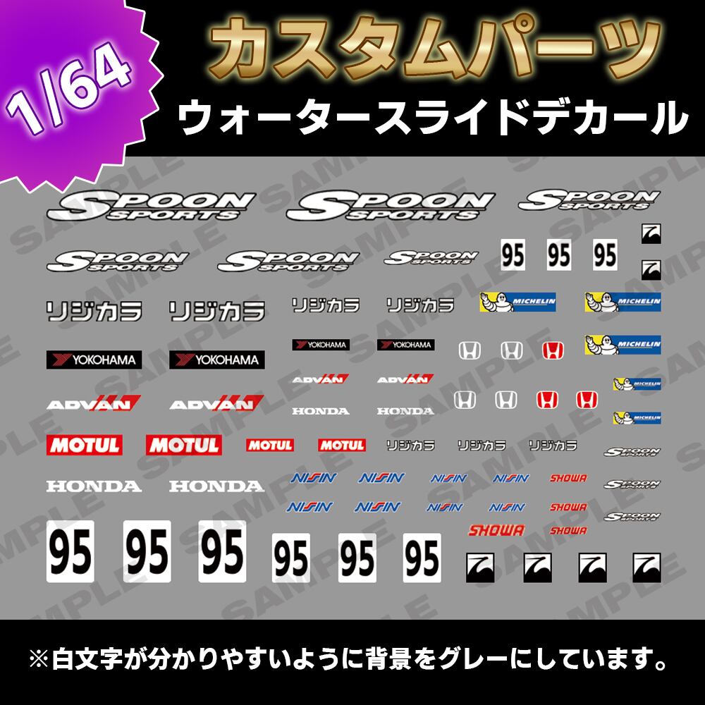 1/64ミニカー カスタムパーツ 汎用 水転写式 白文字クリアデカール Vol.10 Spoon-Sports
