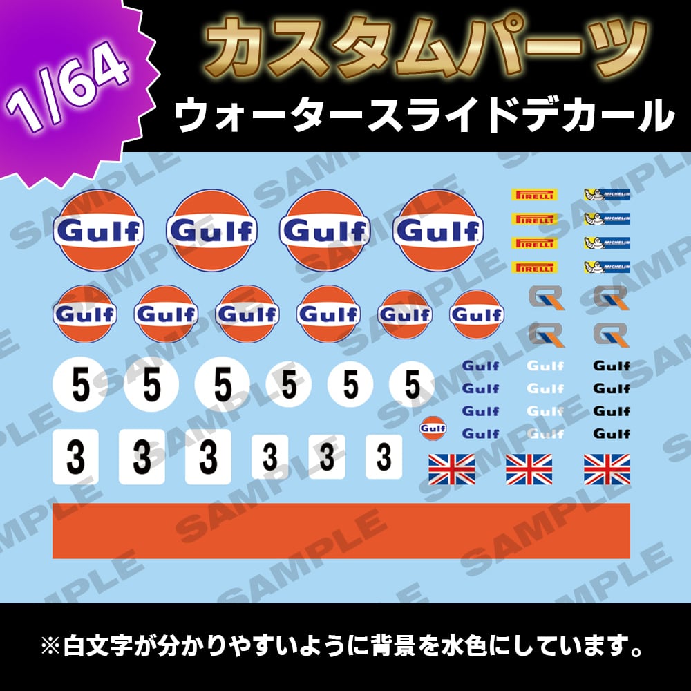 1/64ミニカー カスタムパーツ 汎用 水転写式 白文字クリアデカール Vol.15 Gulf-Racing